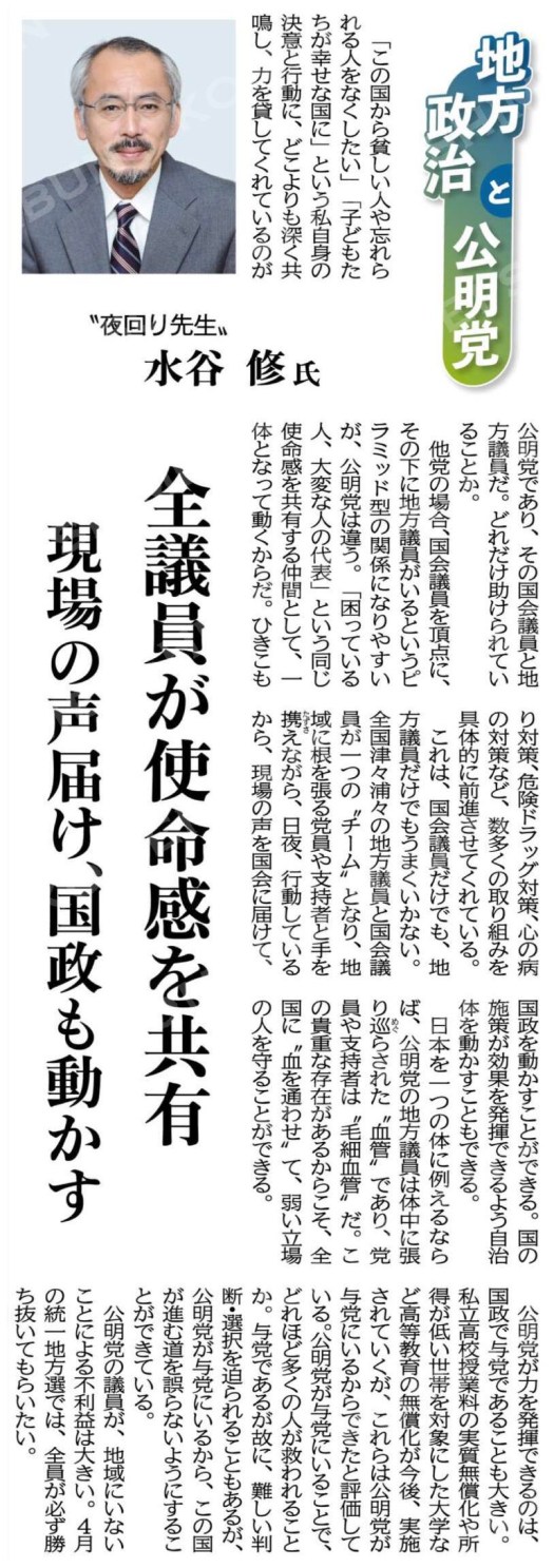 (地方政治と公明党)全議員が使命感を共有/“夜回り先生” 水谷修氏